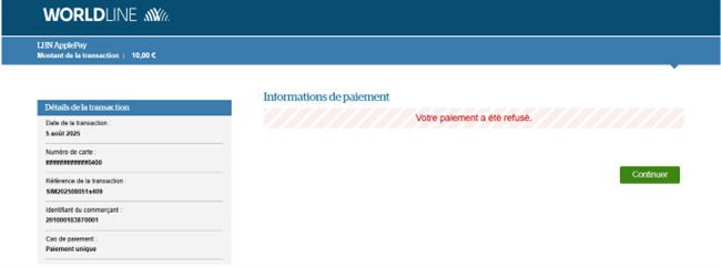À partir de cette release, pour tous les refus liés aux contrôles de fraude, le message affiché sur la page Sips « votre paiement a été refusé par votre établissement bancaire » sera remplacé par « votre paiement a été refusé ».